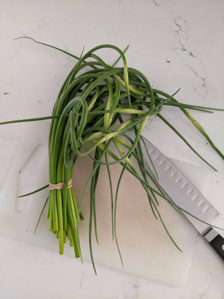 - Fresh garlic scapes, coarsely chopped to yield ~1/2 cup