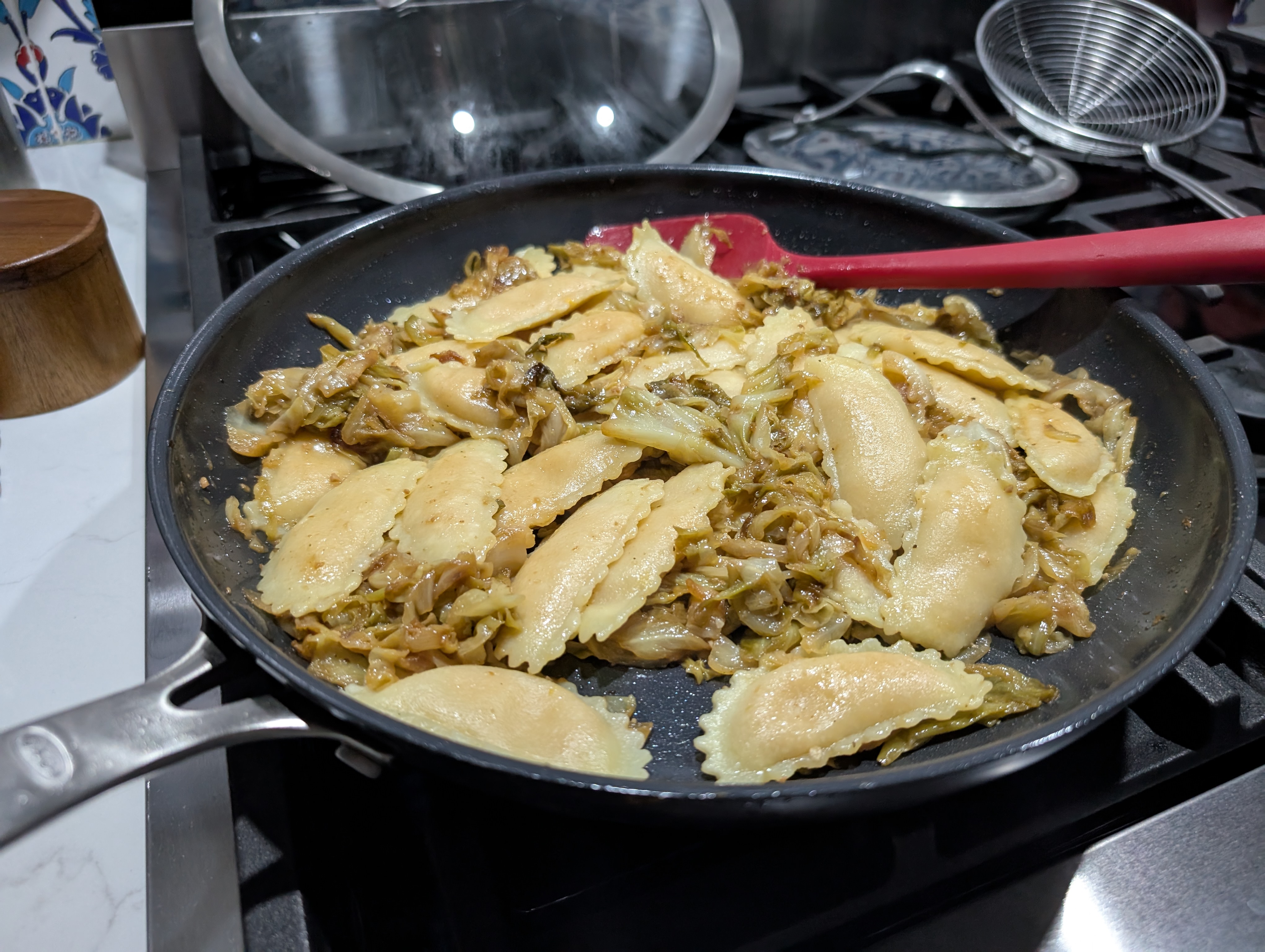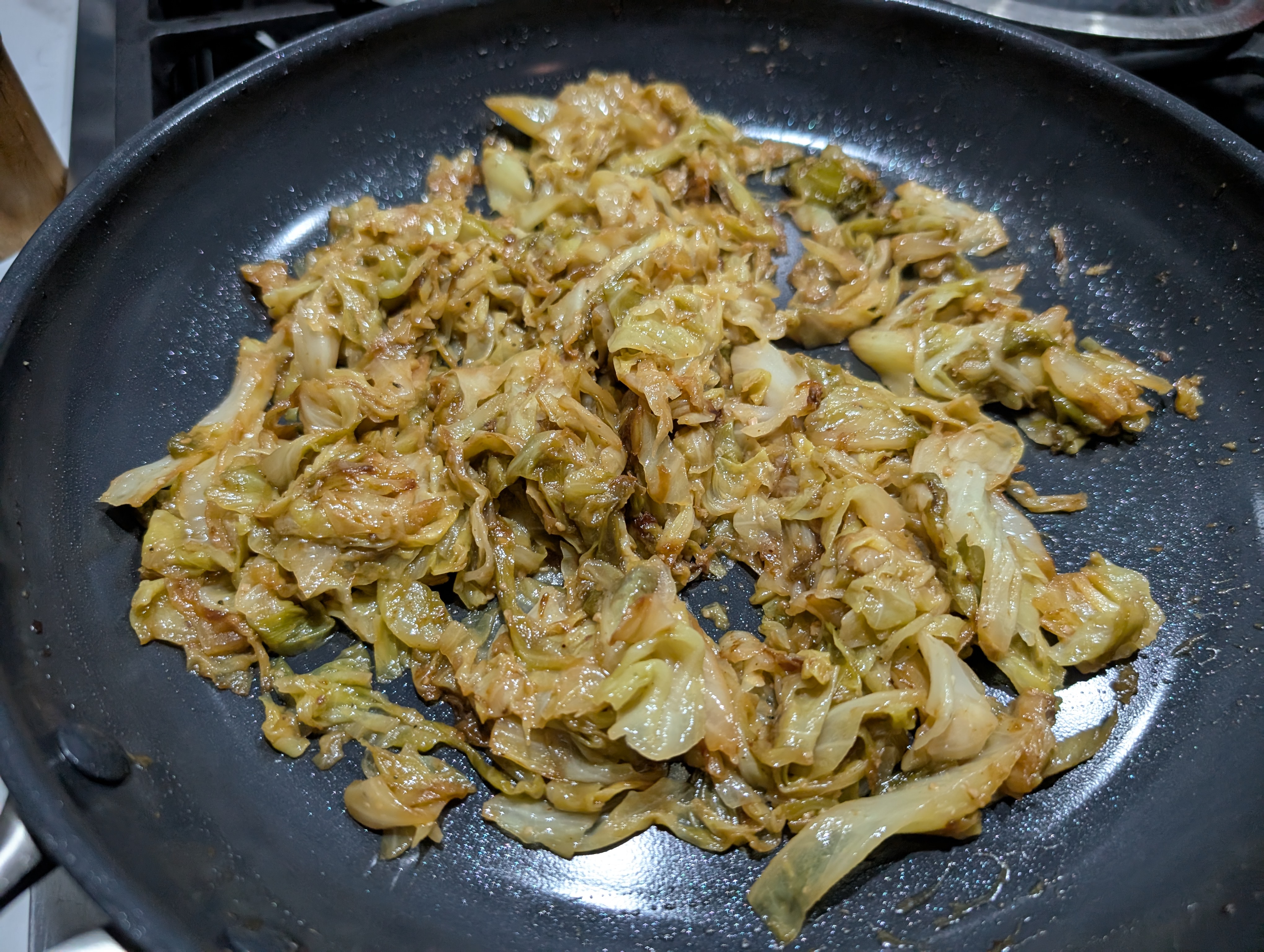 Cabbage cooked in butter is obviously also a common side dish on its own. I like it a little extra buttery here, at least moreso than I personally would for a side dish, to make it “sauce.”